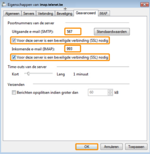 • Le numéro de port est rempli automatiquement. Il doit s'agir de 993.
