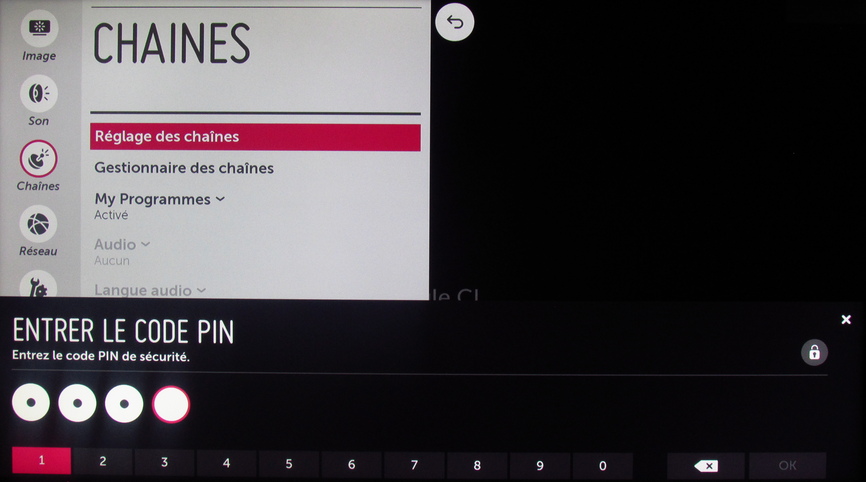 Entrez le code PIN de votre téléviseur (4 chiffres) à l'aide des touches numériques et appuyez sur OK.