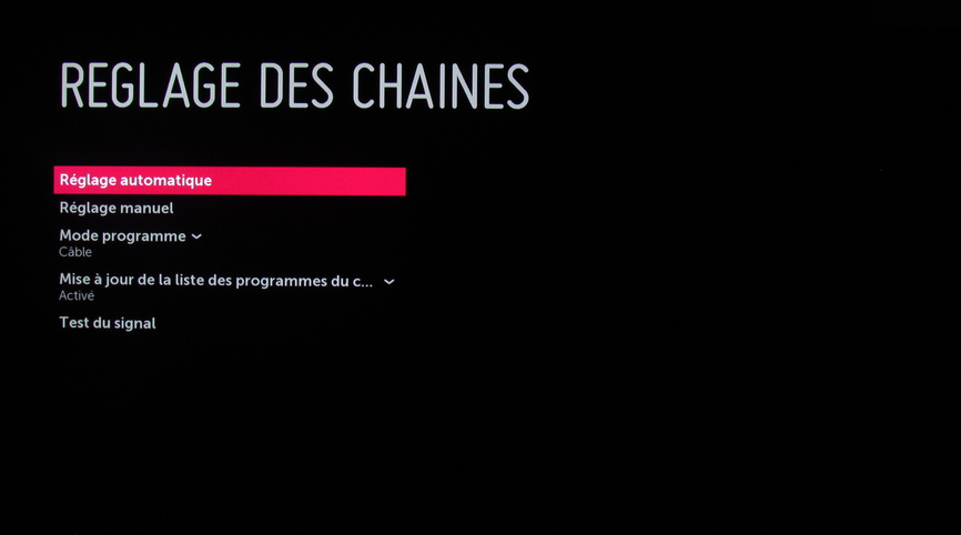 Appuyez à nouveau sur OK pour ouvrir le menu Réglage automatique.