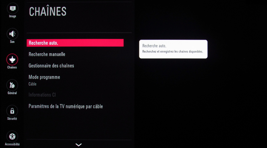 Appuyez à nouveau sur OK pour ouvrir le menu Recherche auto.
