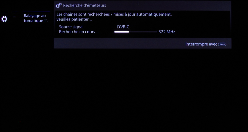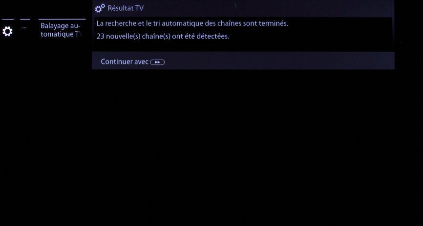 Patientez ; l'installation peut prendre jusqu'à 2 minutes. Dès que votre téléviseur a terminé sa recherche, il affiche le nombre de chaînes trouvées.