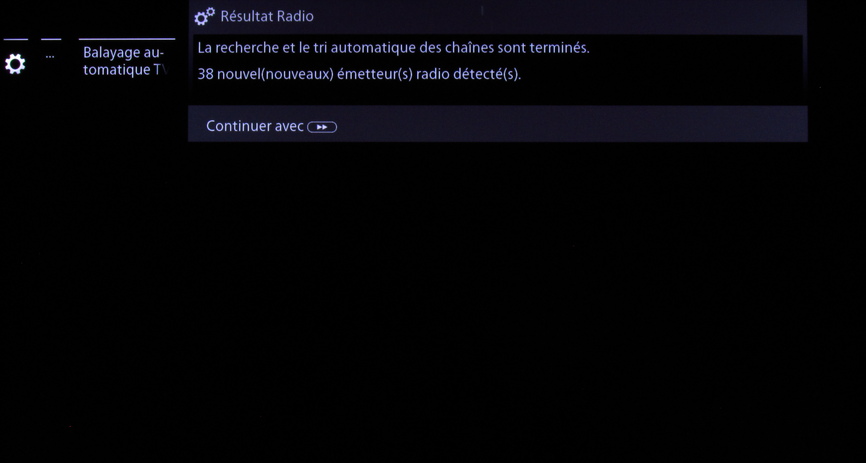 Le téléviseur indique le nombre de nouvelles stations de radio. Appuyez sur >> pour continuer.