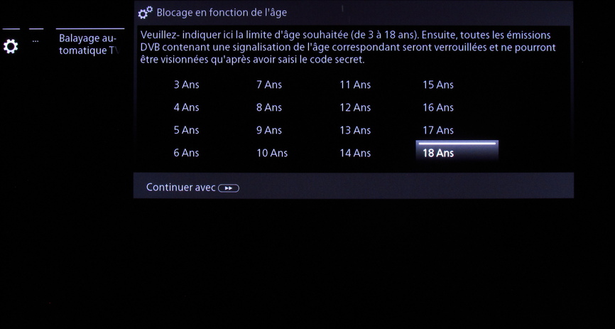 Utilisez les touches fléchées pour choisir une limite d'âge et confirmez avec >>.