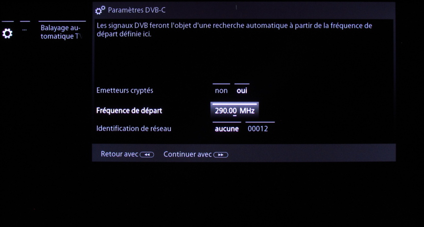 Choisissez Fréquence de départ et utilisez les touches numériques pour entrer 29000.