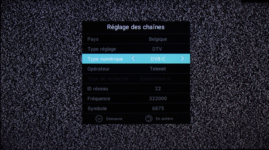 Descendez d'une étape et choisissez DVB-C comme type numérique à l'aide des touches portant des flèches vers la gauche et vers la droite.