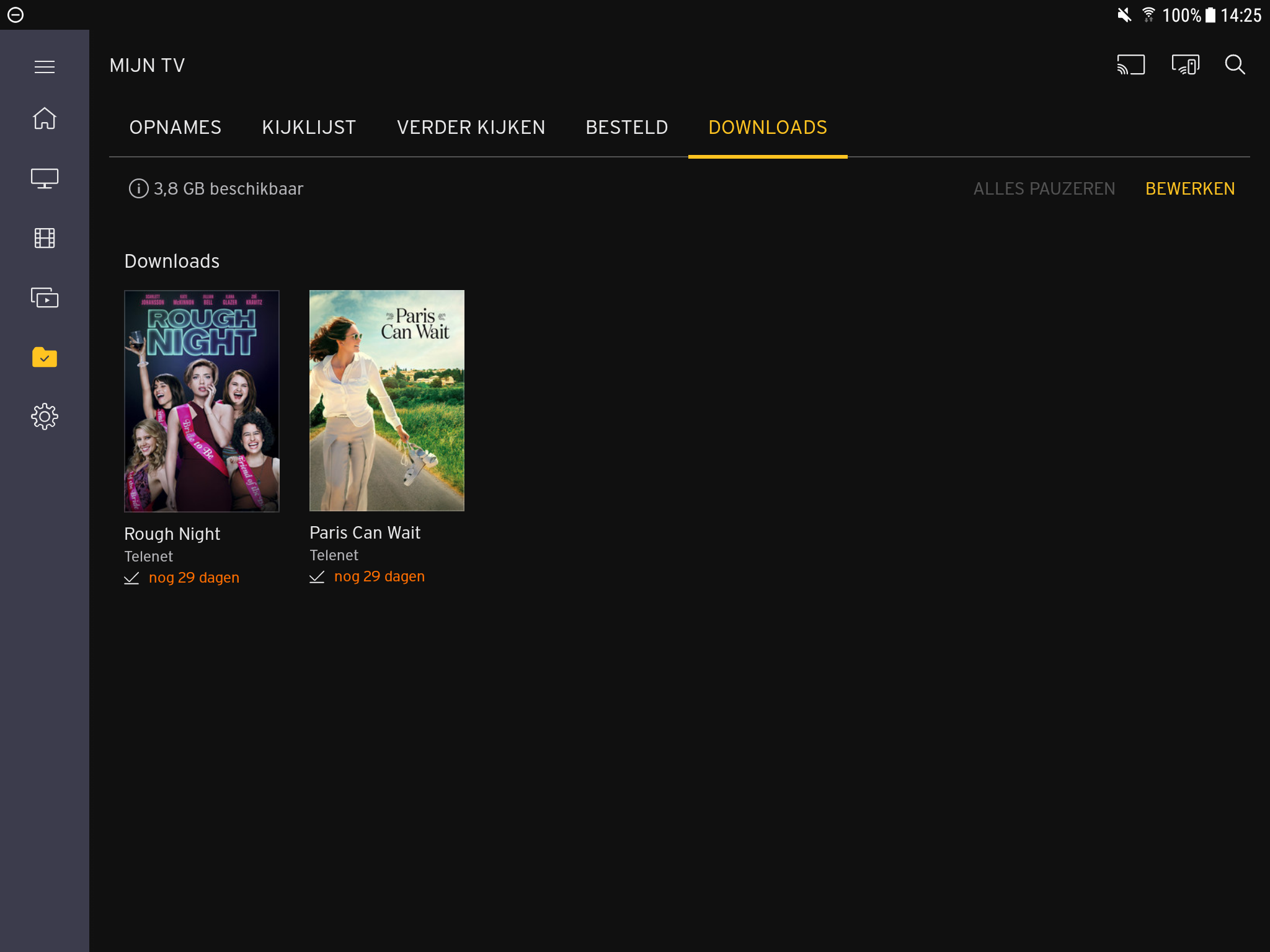 Nadat je je film of serie hebt gedownload, kan je ze terugvinden bij Mijn tv > Downloads. Hier kan je een gepauzeerde download opnieuw starten, door op de download-knop te tikken. Een download verwijderen doe je via Bewerken. Als je offline bent, zie je enkel de films en series die je gedownload hebt.