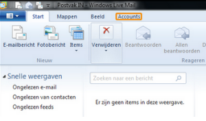 Open Windows Live Mail en kies voor het tabblad Accounts.