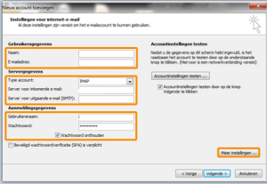 Vul de e-mailinstellingen in: