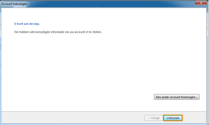 Je e-mailaccount is ingesteld. Je kunt nu testen of je e-mailaccount juist is ingesteld. Stuur hiervoor een e-mail naar je eigen e-mailaccount. Zo controleer je of je mail kunt verzenden en ontvangen. Het kan een paar minuten duren voordat je de e-mail ontvangt