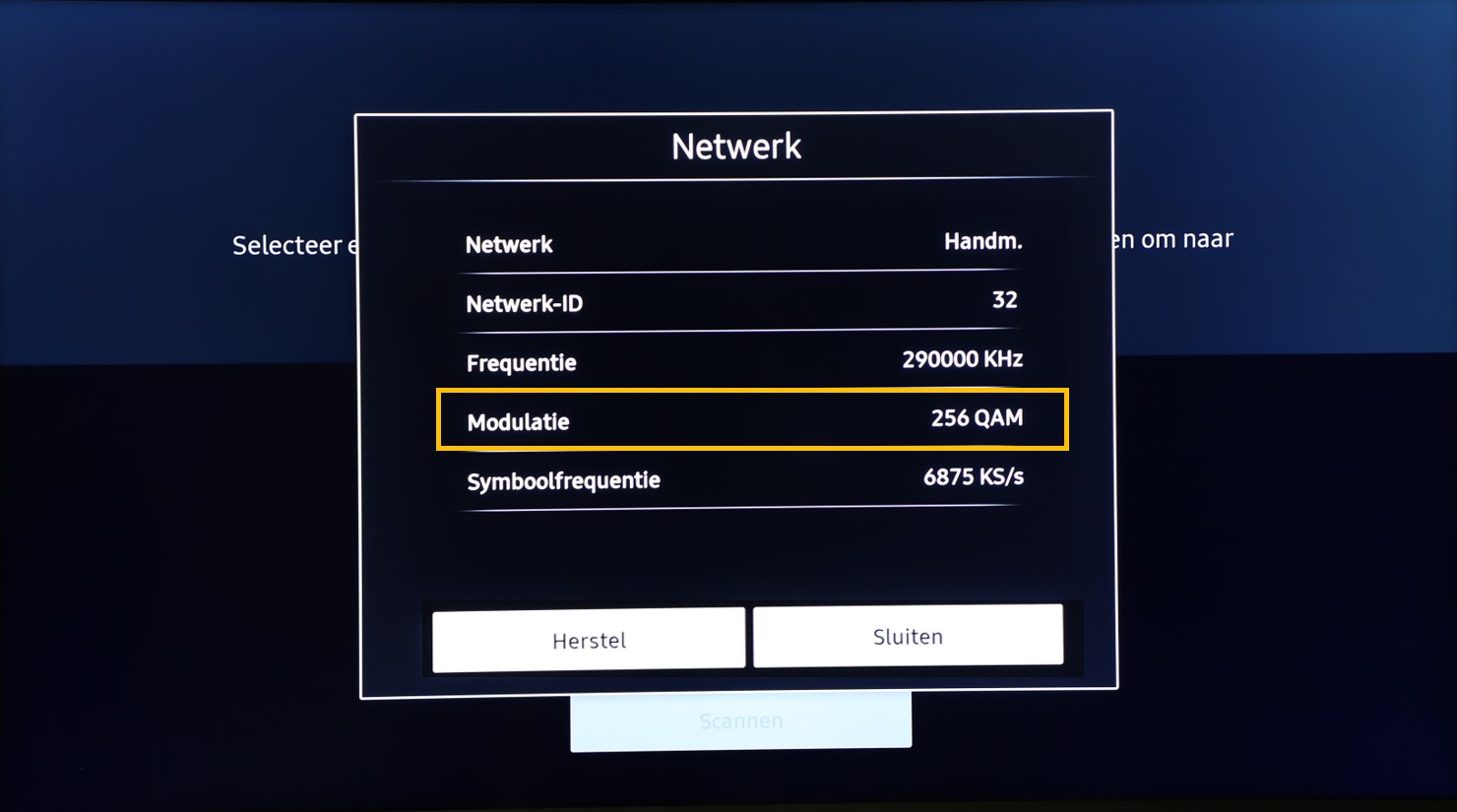 Kies nadien 256 QAM uit de lijst en bevestig met OK.