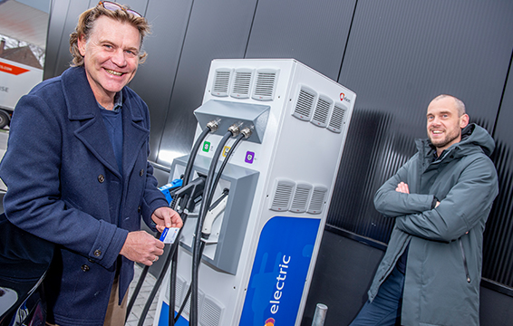 Robert Costerus, responsable de la partie réseau de Q8, et Willem van Breugel, qui gère le projet des chargeurs rapides pour véhicules électriques, collaborent étroitement entre eux et avec des partenaires externes.