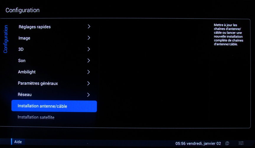 • C'est correct ? Accédez à Installation antenne/câble à l'aide des touches fléchées et appuyez sur OK.