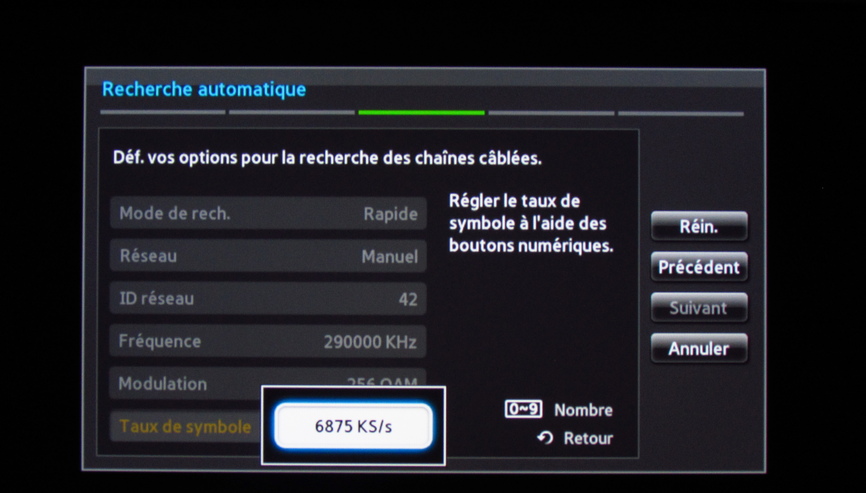 Descendez d’une étape et appuyez sur OK pour choisir Taux de symbole