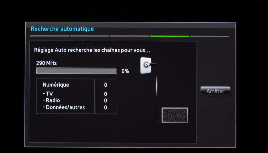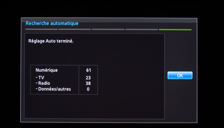 Veuillez patienter. Dès que la recherche est terminée, le téléviseur affiche le nombre de chaînes trouvées.