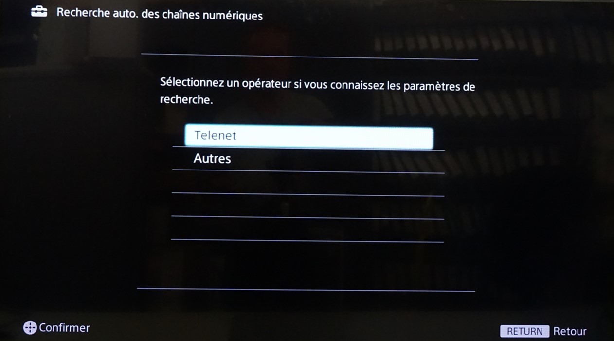 Sélectionnez Telenet à l'aide des touches fléchées et appuyez sur OK.
