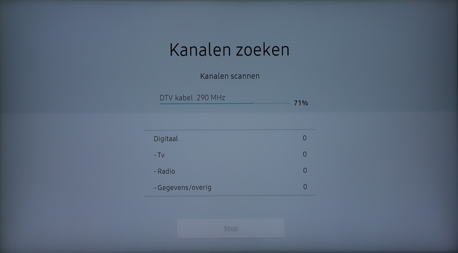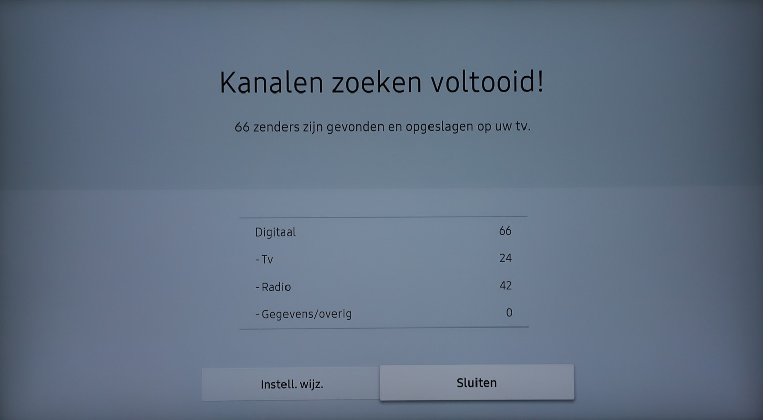 Even geduld, zodra je tv klaar is met zoeken, toont hij het aantal gevonden kanalen.