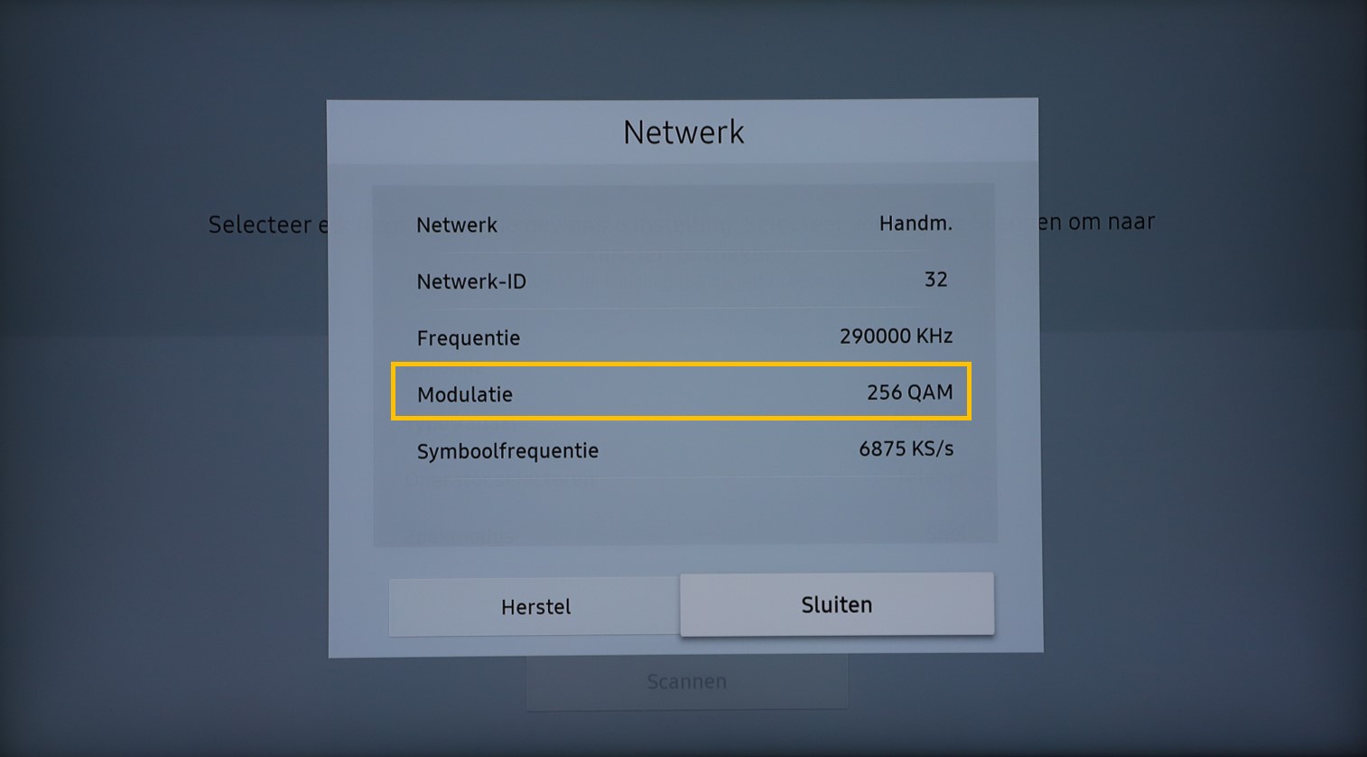 Kies nadien 256 QAM uit de lijst en bevestig met OK.